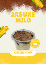Jasukelo — perpaduan jagung manis hangat dengan susu creamy, taburan keju melimpah, dan tambahan milo yang legit. Menghadirkan rasa manis dan gurih yang pas, cocok dinikmati sebagai camilan favorit kapan saja